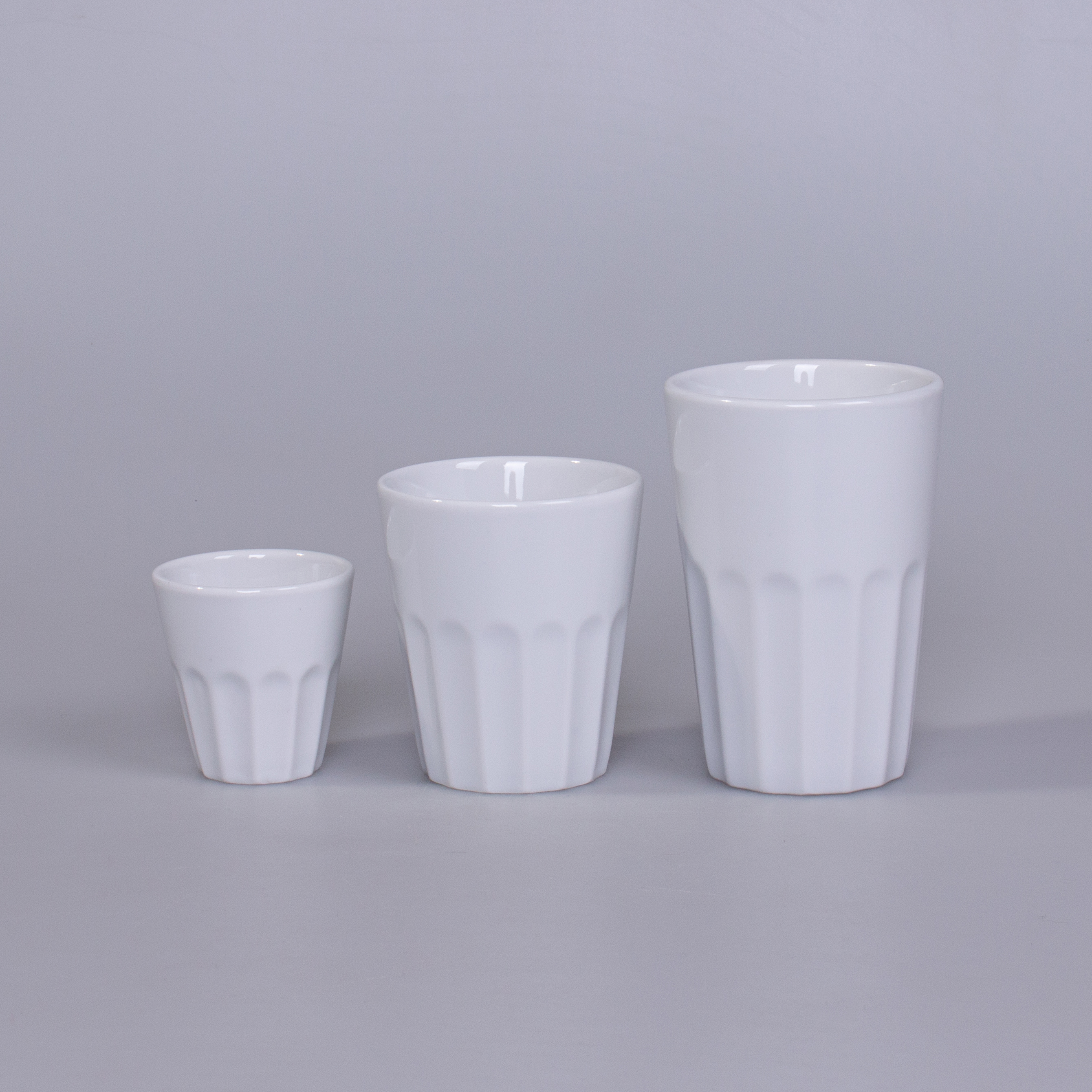 Porcelanowy kubek reklamowy bez ucha dostępny w trzech wersjach rozmiarowych. Falista struktura dolnej części kubka umożliwia pewny uchwyt. Fason umożliwiający sztaplowanie.