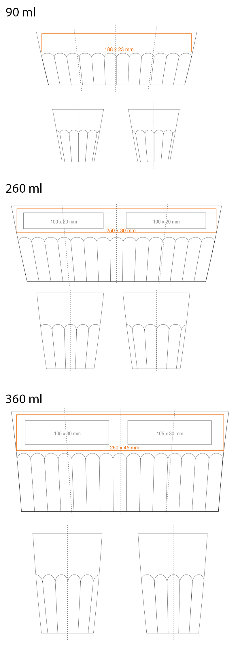 Dostępne zdobienia dodatkowe dla produktu NOBLE: *  (90 / 260 / 360 ml)