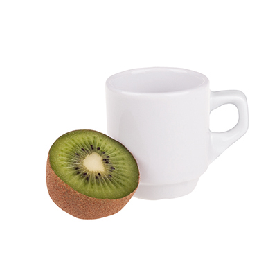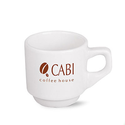 Bardzo mały kubeczek reklamowy wykonany z grubościennej porcelany. Rzadko spotykany kształt uchwytu idealnie współgra z prostymi ściankami. Produkt jest końcówką serii, mogą na nim występować nakłucia, kropki oraz różnice w odcieniu szkliwa.